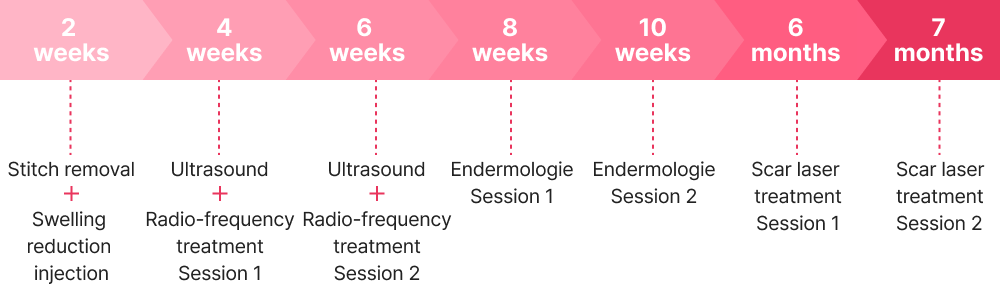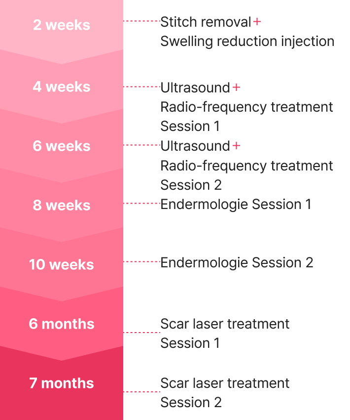 Gentle laser stimulation reduces redness and pigmentation at incision sites while promoting skin regeneration to minimize scarring.